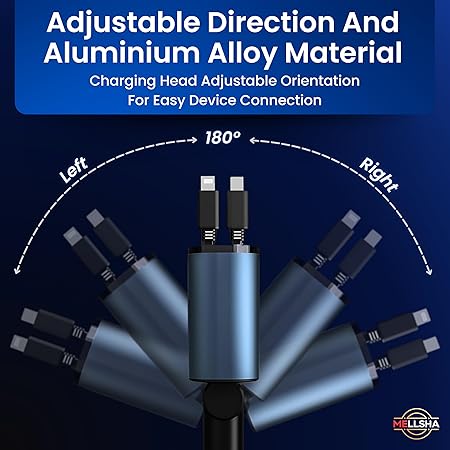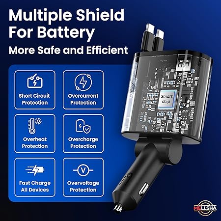 MELLSHA Retractable Car Charger, 100W 4-in-1 Super Fast Charge Car Mobile Charger, Retractable Cables (31.5 Inch)