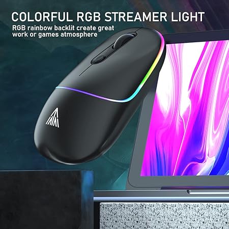 - 【4 Colorful LED Lights】This RGB Breathing rainbow Backlight computer mouse wireless with USB adapter and sleek design is low profile. Equipped with 4 fancy cool RGB lighting Modes. You can easily change the light up color or turn off the backlight of the optical jellycomb wireless mouse by clicking the top button, bring a visual and decorative feast when using the great cheap mouse with usb dongle for gaming or working. You will get what you pay!